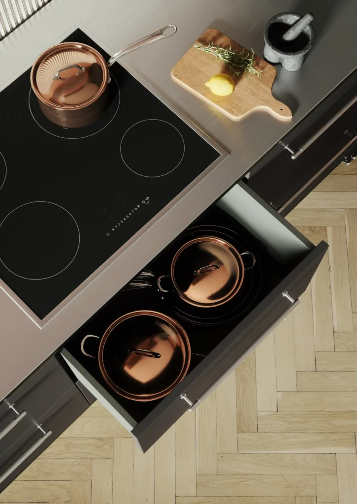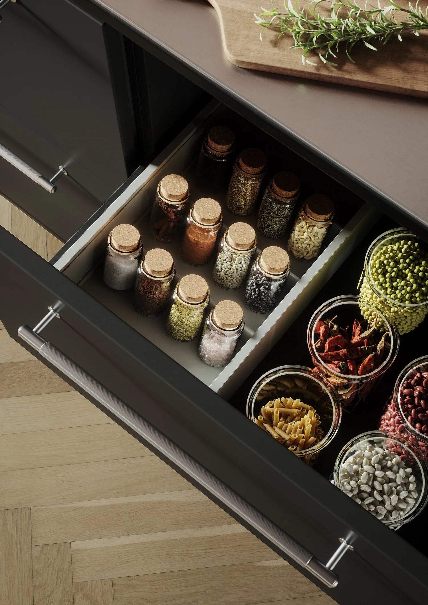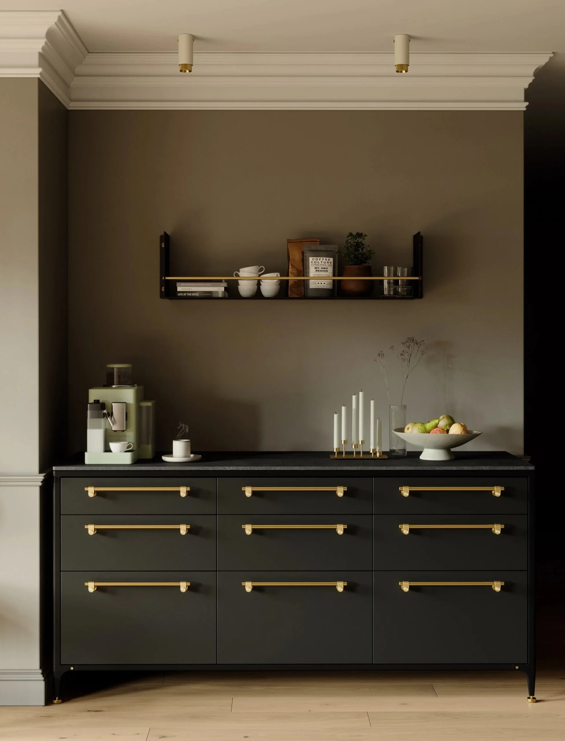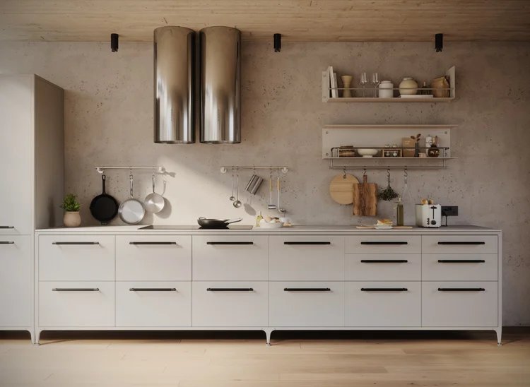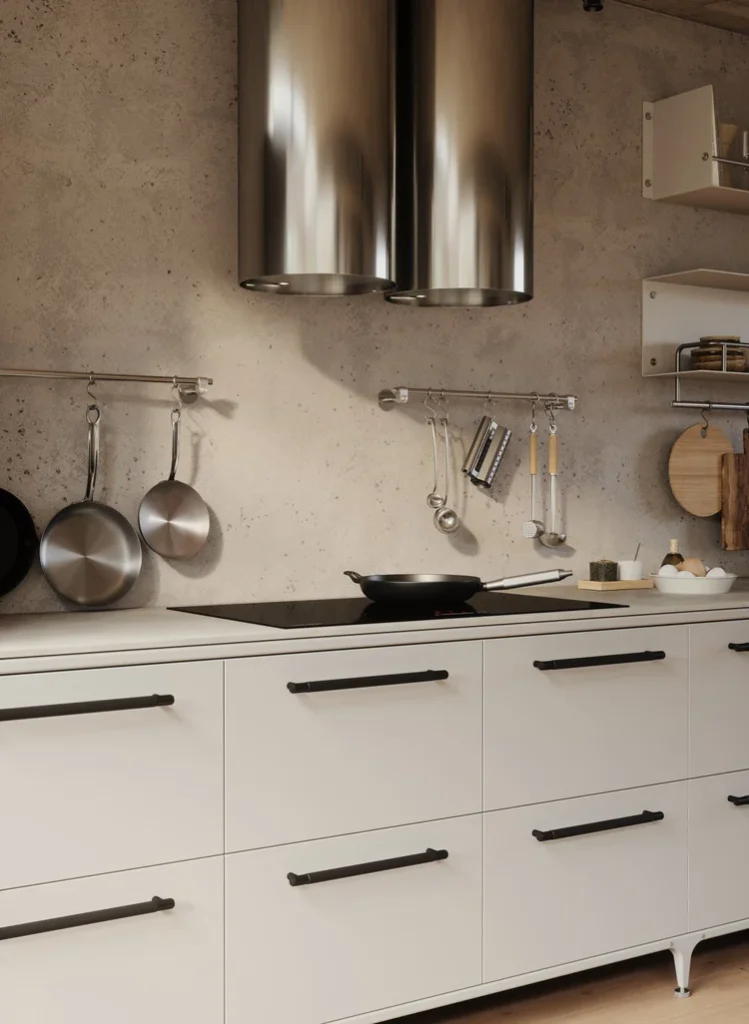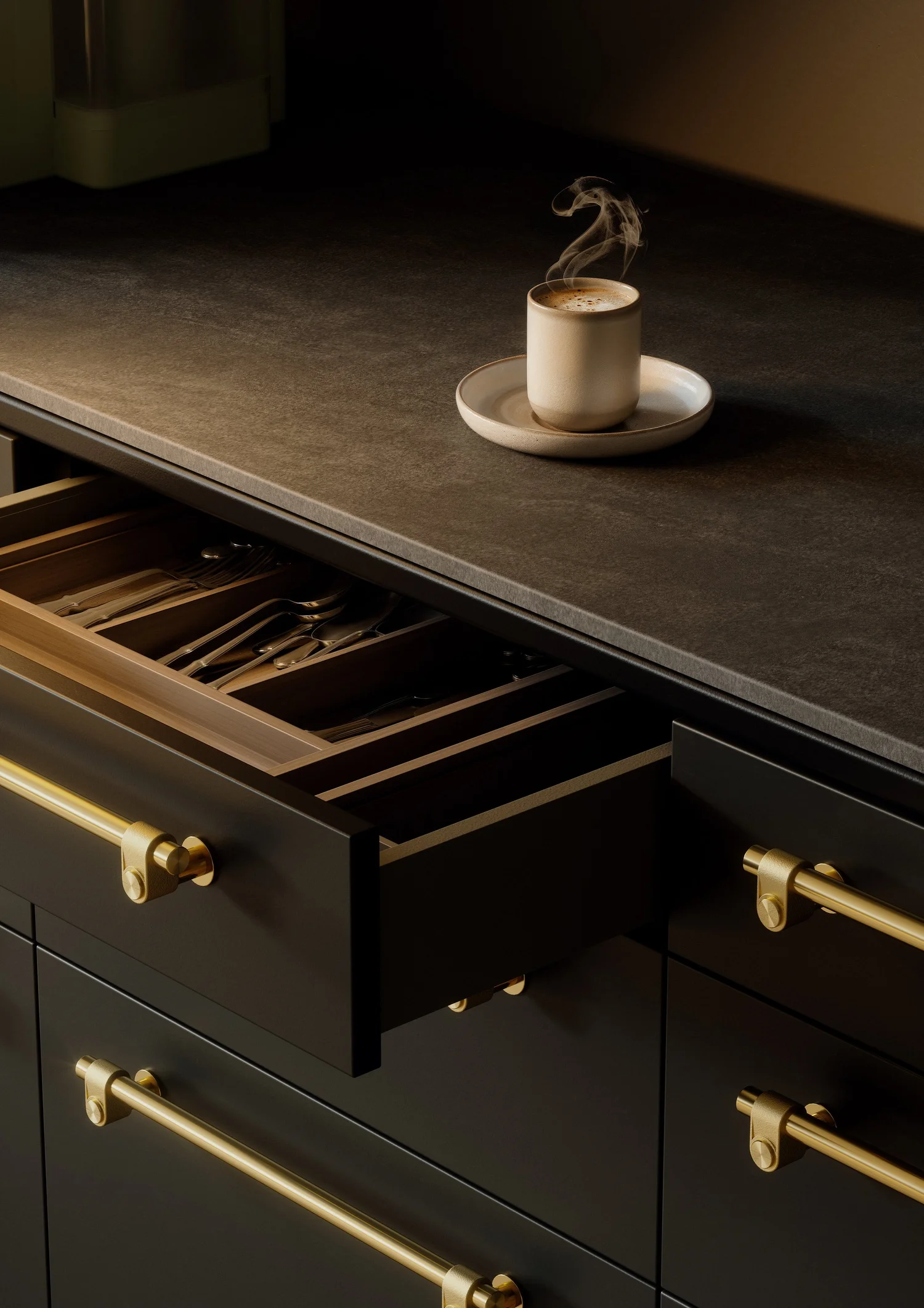 Corpurile înrămate, realizate în același stil, mențin coerența vizuală și creează un ambient elegant și organizat — locul unde gătitul, servirea mesei și socializarea se îmbină armonios. Un mod modern de a trăi, fără compromisuri.