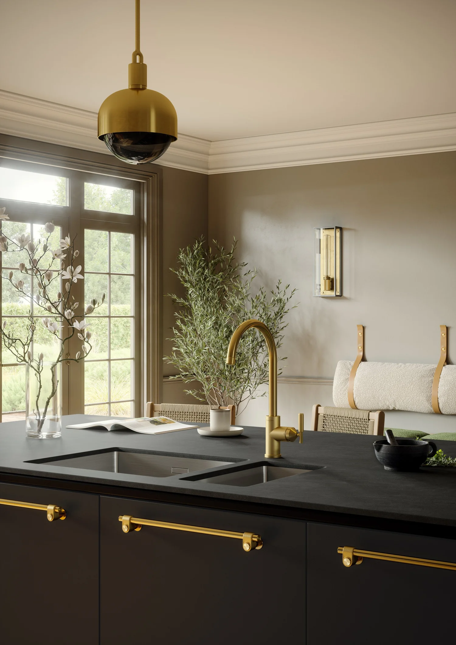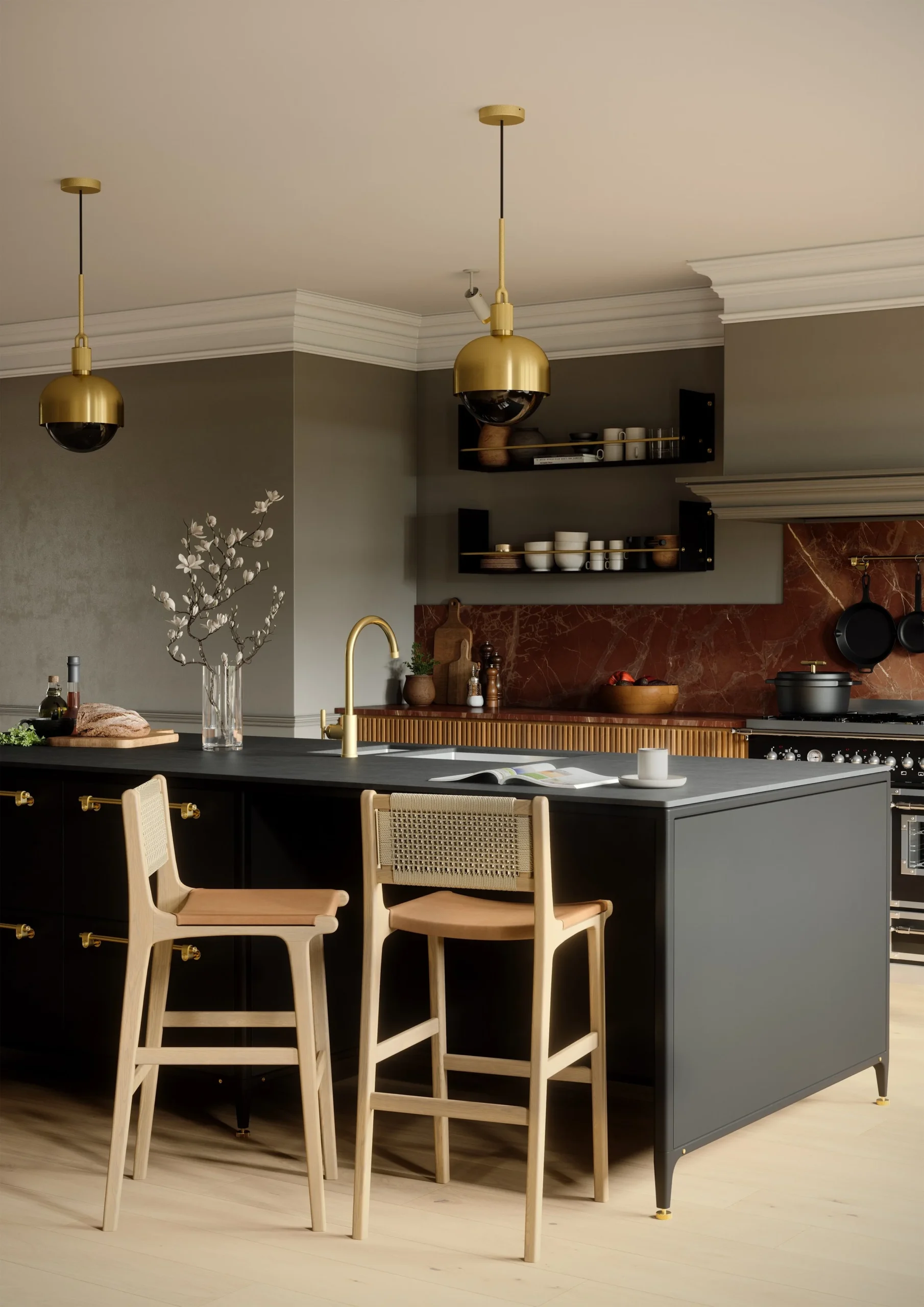 Deschisă atât către viața de zi cu zi, cât și către gătit, bucătăria Cheltenham Country este construită în jurul unei insule generoase care aduce oamenii împreună — un spațiu pentru prepararea mâncării, lucru sau pur și simplu pentru a petrece timp împreună. Gândită pe zone funcționale, cu elemente precum coffee station și loc de relaxare, îmbină utilul cu sentimentul de căldură. Detaliile semnătură Buster + Punch din feronerie, iluminat și întrerupătoare adaugă o notă rafinată, iar mobilierul extins oferă depozitare inteligentă și versatilitate pentru viața de familie și momentele de socializare.